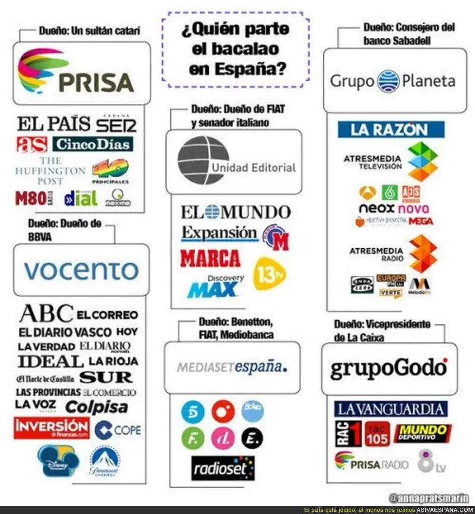 MEDIOS DE COMUNICACIÓN Asturianu/ Castellano Los medios de comunicación son la ferramienta perfecta para tener poder. N’una democracia son más importantes que’l poder financieru, yá que son los que remanen la opinión de la xente, polo tanto, el sofitu social, dexando a los partíos corruptos llegar y caltenese nel poder. La gran mayoría son privaos, […]
